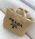 This Prada Tote Bag is a summer essential made of raffia. A maxi version of Prada's iconic lettering logo embroidered on the front enhances the accessory.