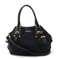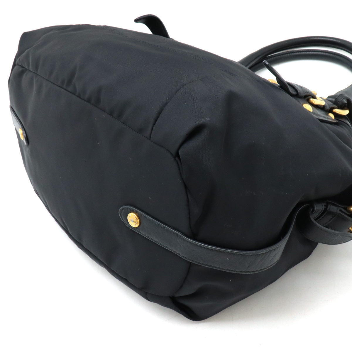 Prada Logo Jacquard Nylon Leather Tote Bag