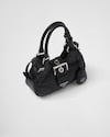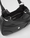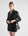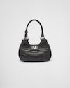 Reimagining the iconic lines of a model from the Prada archives from the 2000s, this nappa leather bag combines traditional elements reinterpreting them in a new way, with an innovative soft design. Softness and simplicity of the silhouette define this hobo bag, embellished by the ton-sur-ton triangle logo that frames the lettering logo, creating a three-dimensional and material game and enriching the design of the accessory.