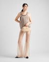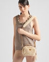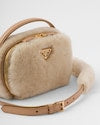 The structured and versatile design of this mini bag is enriched by the soft feel of shearling for an original touch of wintry allure. The accessory, enhanced with leather details and with a two-way zipper closure and metal hardware, is decorated with the enameled metal triangle logo.