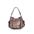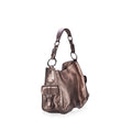 - Metallic silver/grey saffiano pebbled leather