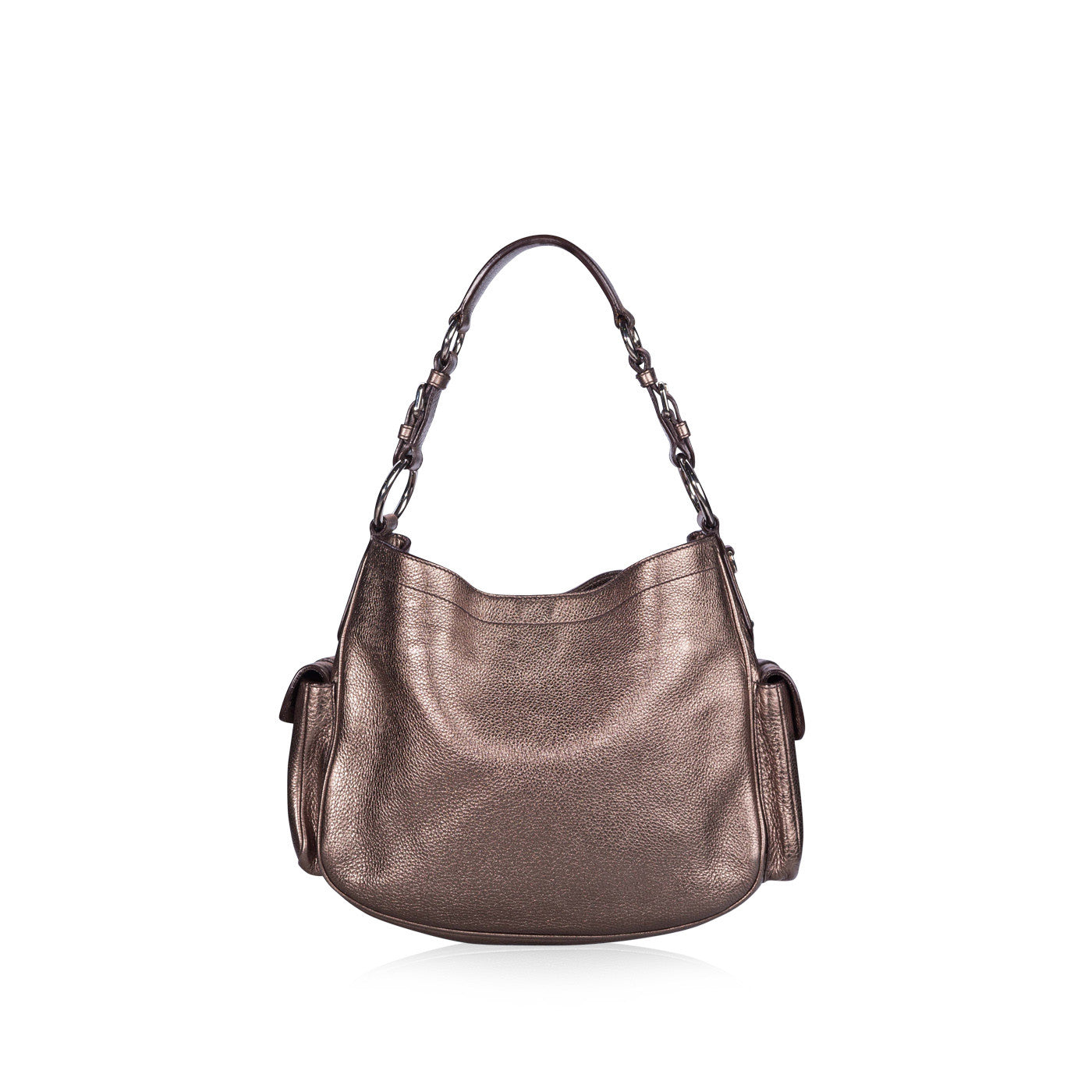 - Single flat leather shoulder Handle with silver-tone link details
