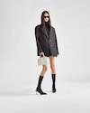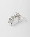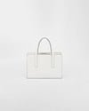 This handbag, a re-edition of an iconic Prada bag of 1995, is characterized by its elegant geometric silhouette with distinct, minimalist lines. Formal allure and practicality meet in its design with a central zipper closure, enhanced by the sophisticated accent of the screen-printed lettering logo. The accessory is made of fine brushed leather, an expression of the brand's expertise.