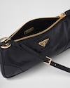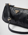 A re-edition of an iconic style of 2002, this shoulder bag summarizes Prada codes in a refined, versatile silhouette that establishes a dialog between stylistic languages of past and present. Made of leather, the sophisticated minimalist accessory is characterized by an adjustable shoulder strap, metal hardware, and removable key ring. The design is completed by the iconic signature of the enameled metal triangle logo.