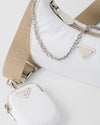 Inspired by the iconic mini hobo bag, the Prada Re-Edition 2005 shoulder bag is made of Re-Nylon: a regenerated nylon yarn (ECONYL®)produced from recycled, purified plastic trash collected in the ocean, fishing nets and textile waste fibers. This versatile bag with Saffiano leather trim comes with a detachable pouch attached to the shoulder strap.