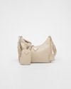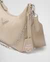 Inspired by the iconic mini hobo bag, the Prada Re-Edition 2005 shoulder bag is made of Re-Nylon: a regenerated nylon yarn (ECONYL®)produced from recycled, purified plastic trash collected in the ocean, fishing nets and textile waste fibers. This versatile bag with Saffiano leather trim comes with a detachable pouch attached to the shoulder strap.