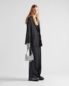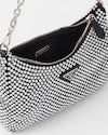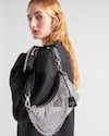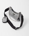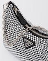 A new interpretation of an iconic Prada style, the sparkling Re-Edition 2005 mini-bag is characterized by the all-over crystal embellishment that gives it precious allure. The bag, which comes with a coordinated pouch that hooks to the strap, can be worn in different ways thanks to the adjustable woven tape shoulder strap and chain handle.