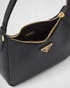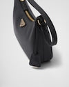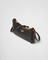 A harmonious design characterizes this bag made of Saffiano, a very high quality leather that has become an iconic material of the brand with its crosshatched texture. The accessory with a zipper closure and removable key ring is decorated with the metal triangle logo.