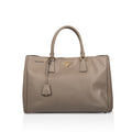 The largest of the Saffiano line, Prada presents their iconic Luxe tote in nude Saffiano leather. The ideal handbag for any busy woman on the go - whether you're off to work, running errands, or grabbing lunch with your girlfriends, the Luxe tote is the perfect companion. Hold anything you may need throughout your day comfortably inside the spacious compartments while remaining sleek, stylish and sophisticated. A timeless bag that will never go out of style, the Luxe tote is a Prada signature that will remain popular and forever in-demand. A well-worthy addition to any luxury handbag collection, the Luxe tote is an investment you won't regret.