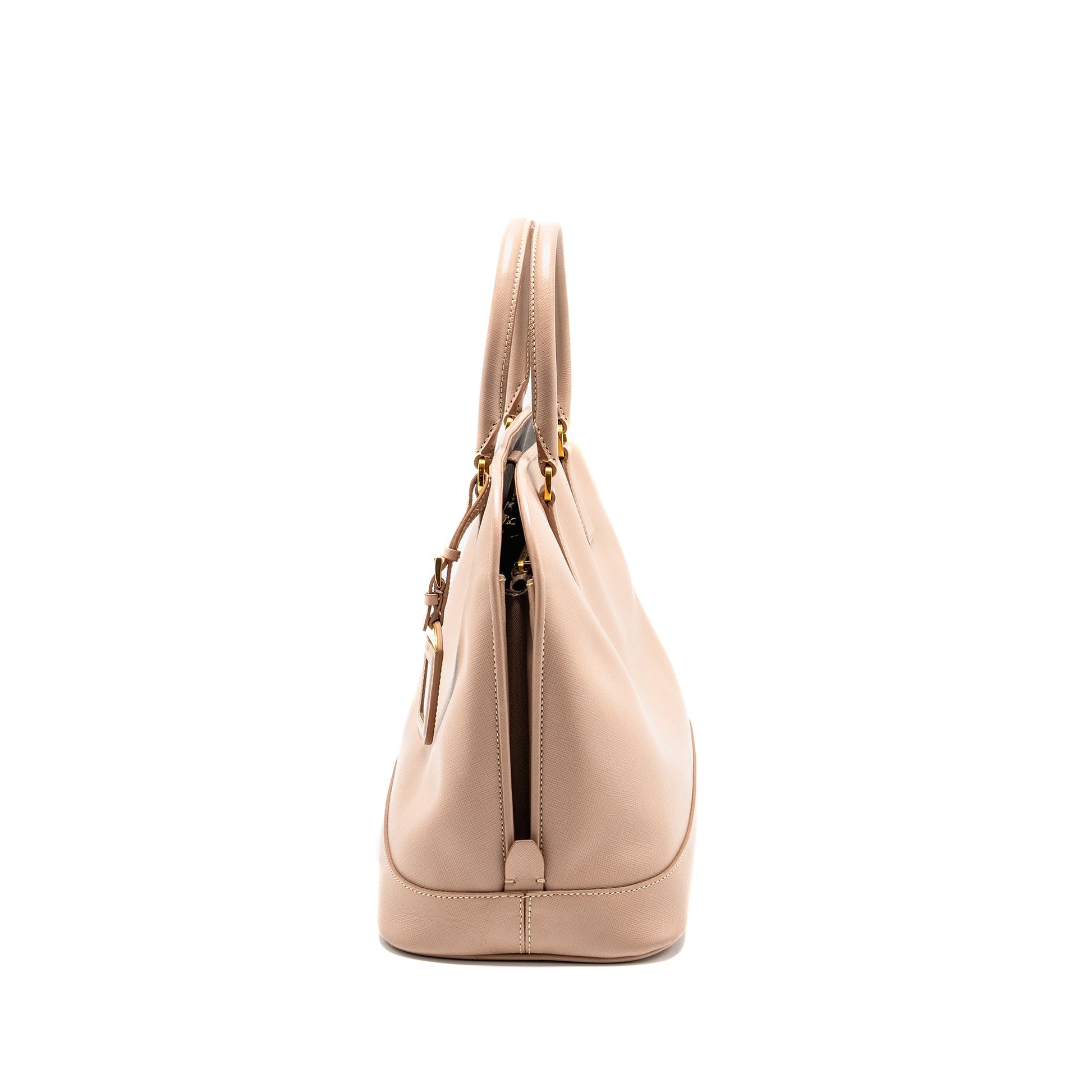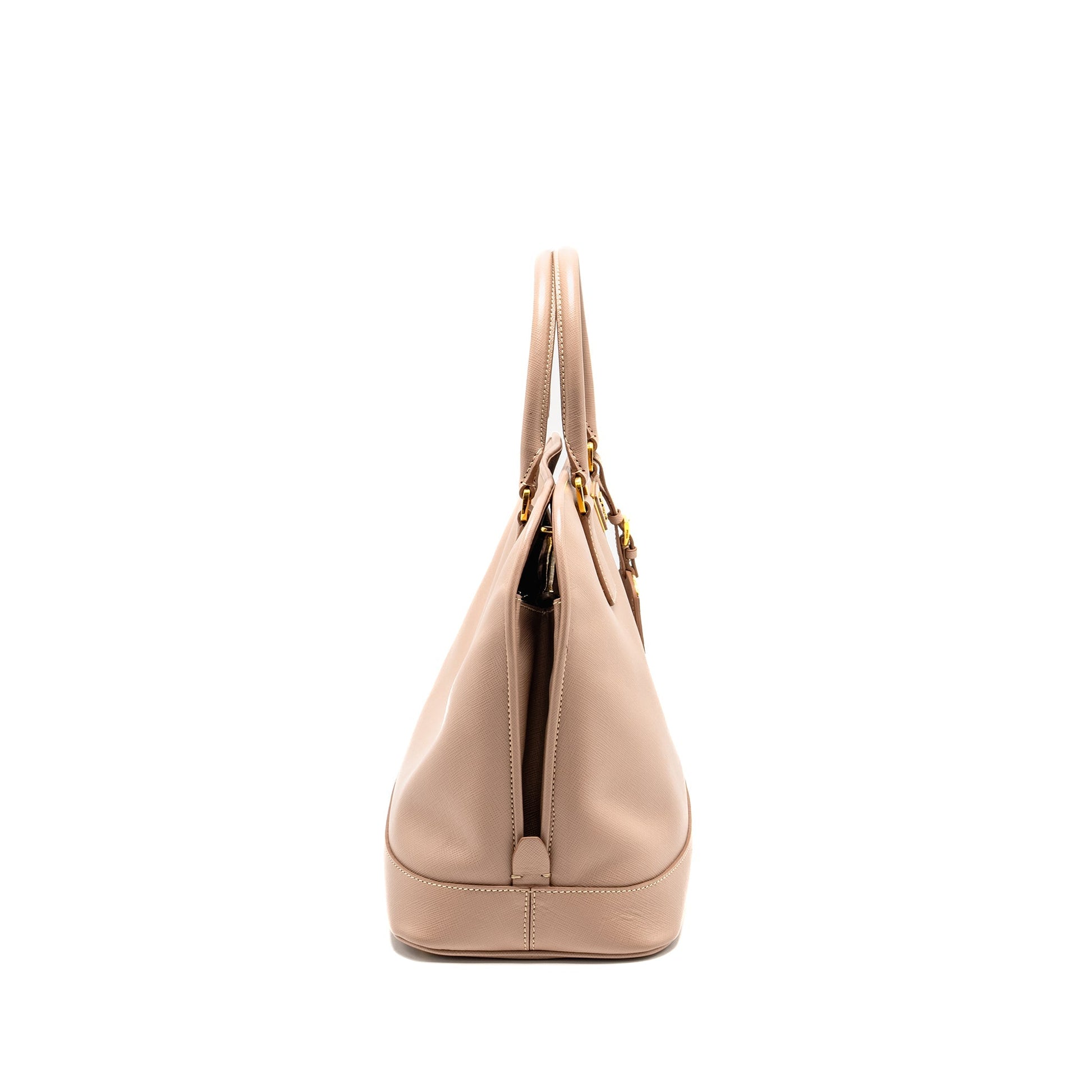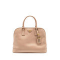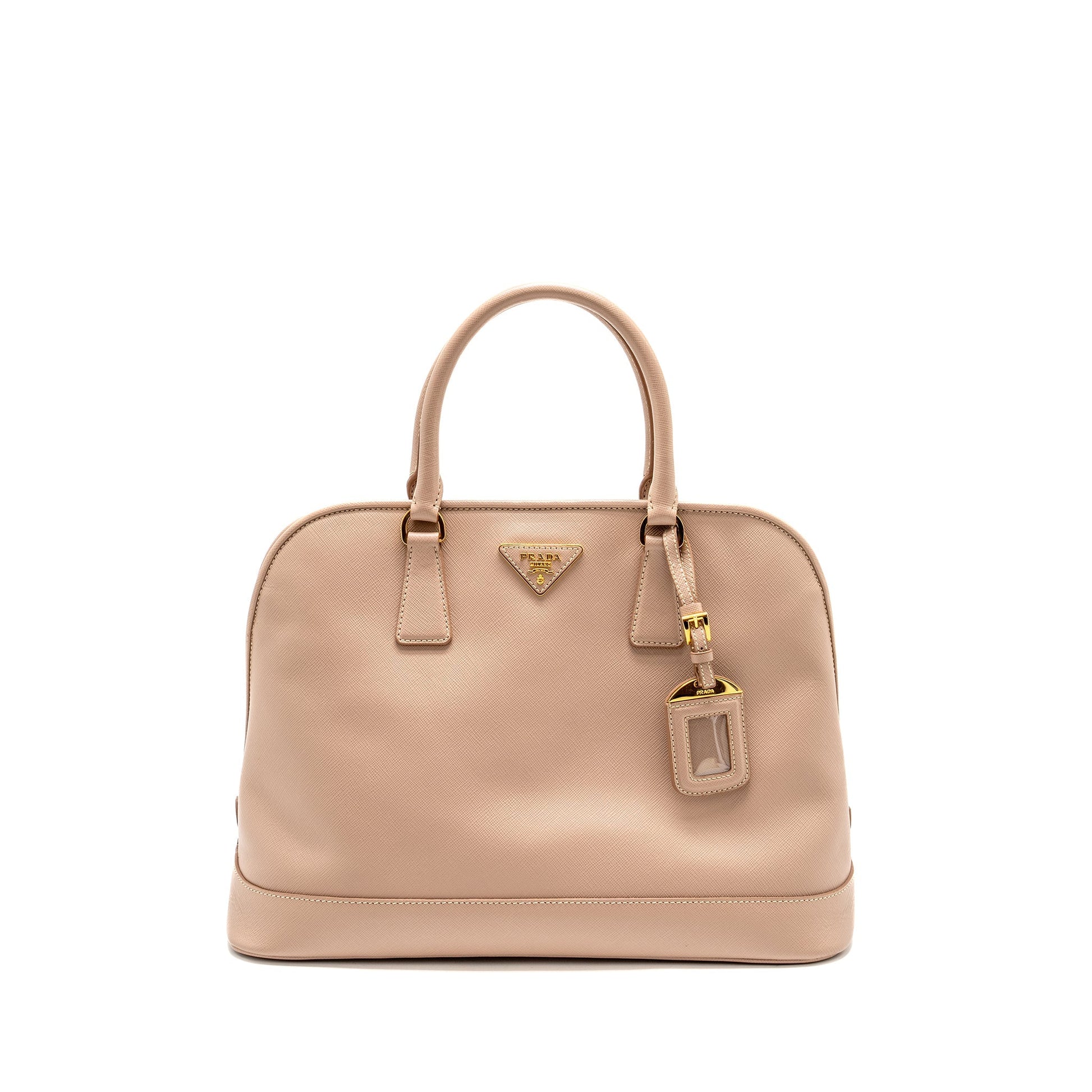 Prada Saffiano Vernice Promenade Dome Tote Leather Beige GHW