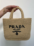 This small Prada Tote Bag is a summer essential made of straw/wicker.