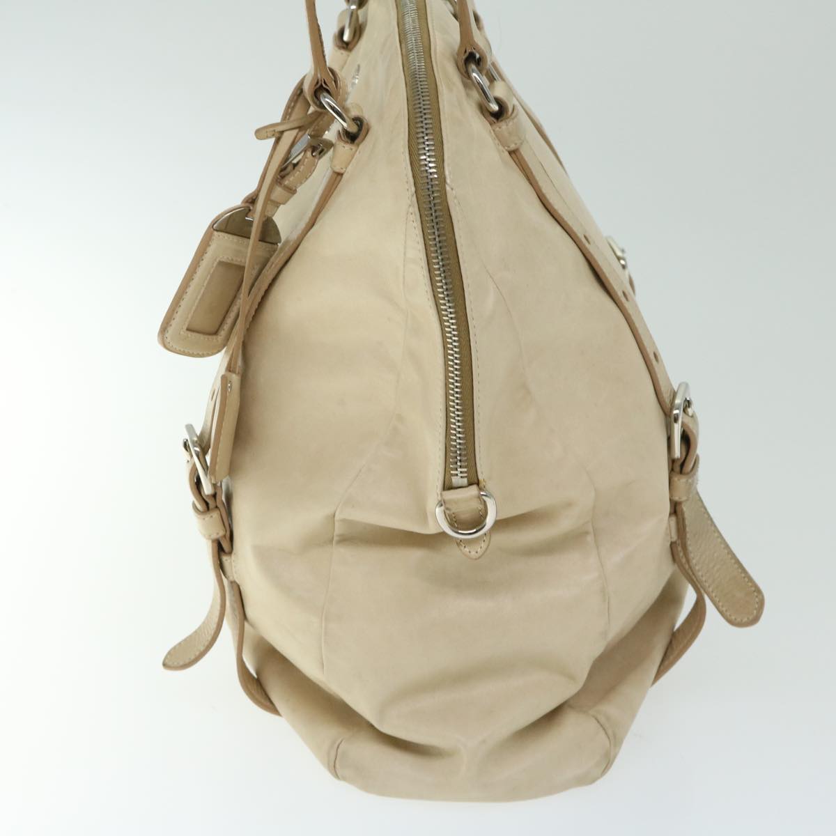 PRADA Tote Bag Leather Beige ki4117