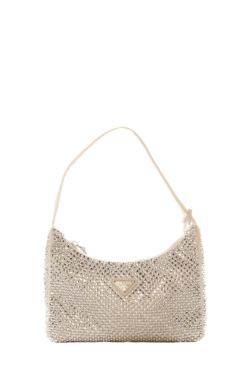 Prada White 2021 Crystal Re-edition 2000 Mini Handbag