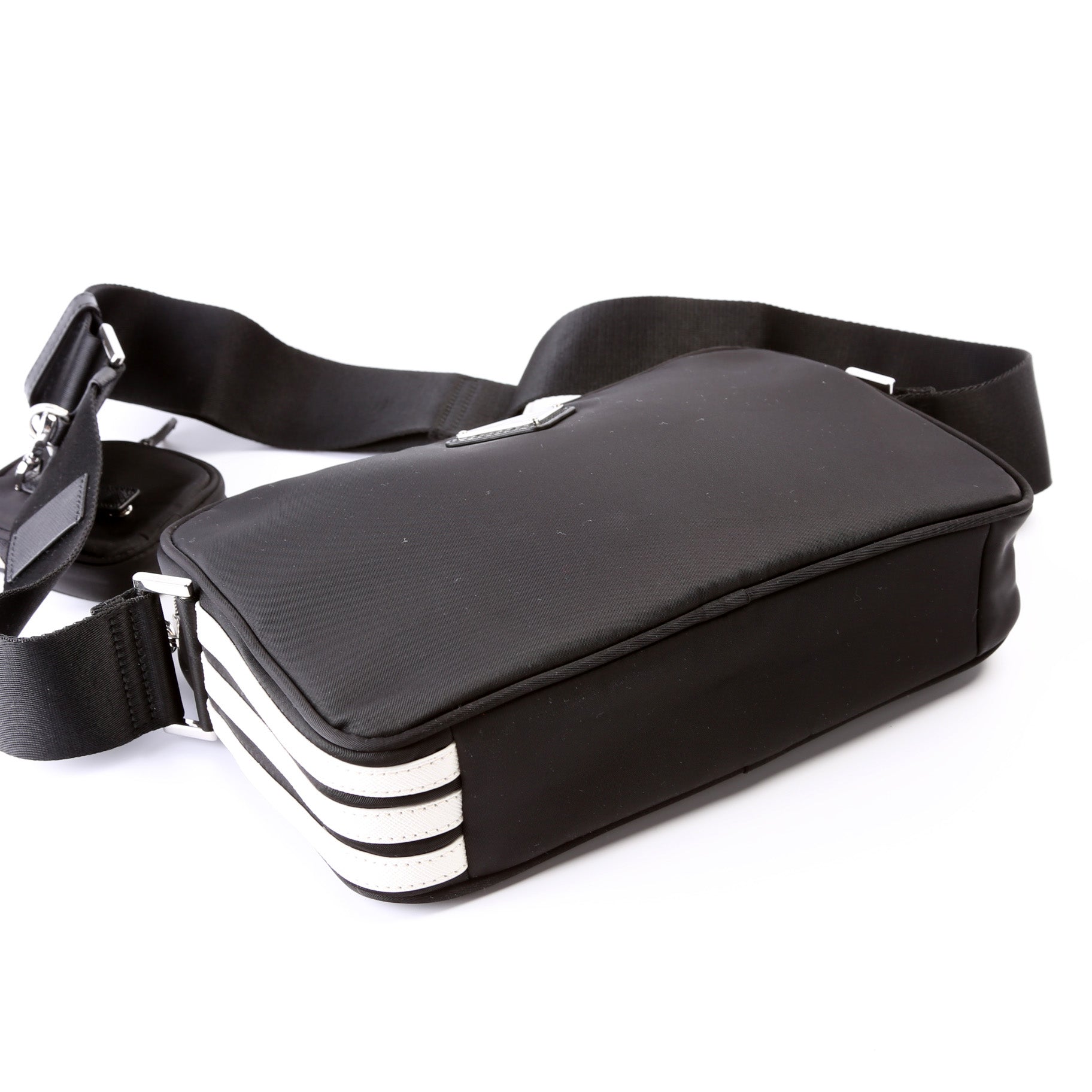 This Prada X Adidas Re-Nylon-Shoulder Bagis eye catching bag. The exterior is in the classic Prada Nylon.