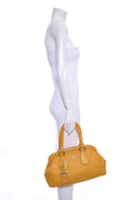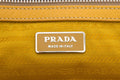 Prada Yellow Vitello Daino Leather Handbag with Braided Handle Detail. This item is in good condition; some slight wear to leather on piping and corners on bottom exterior.