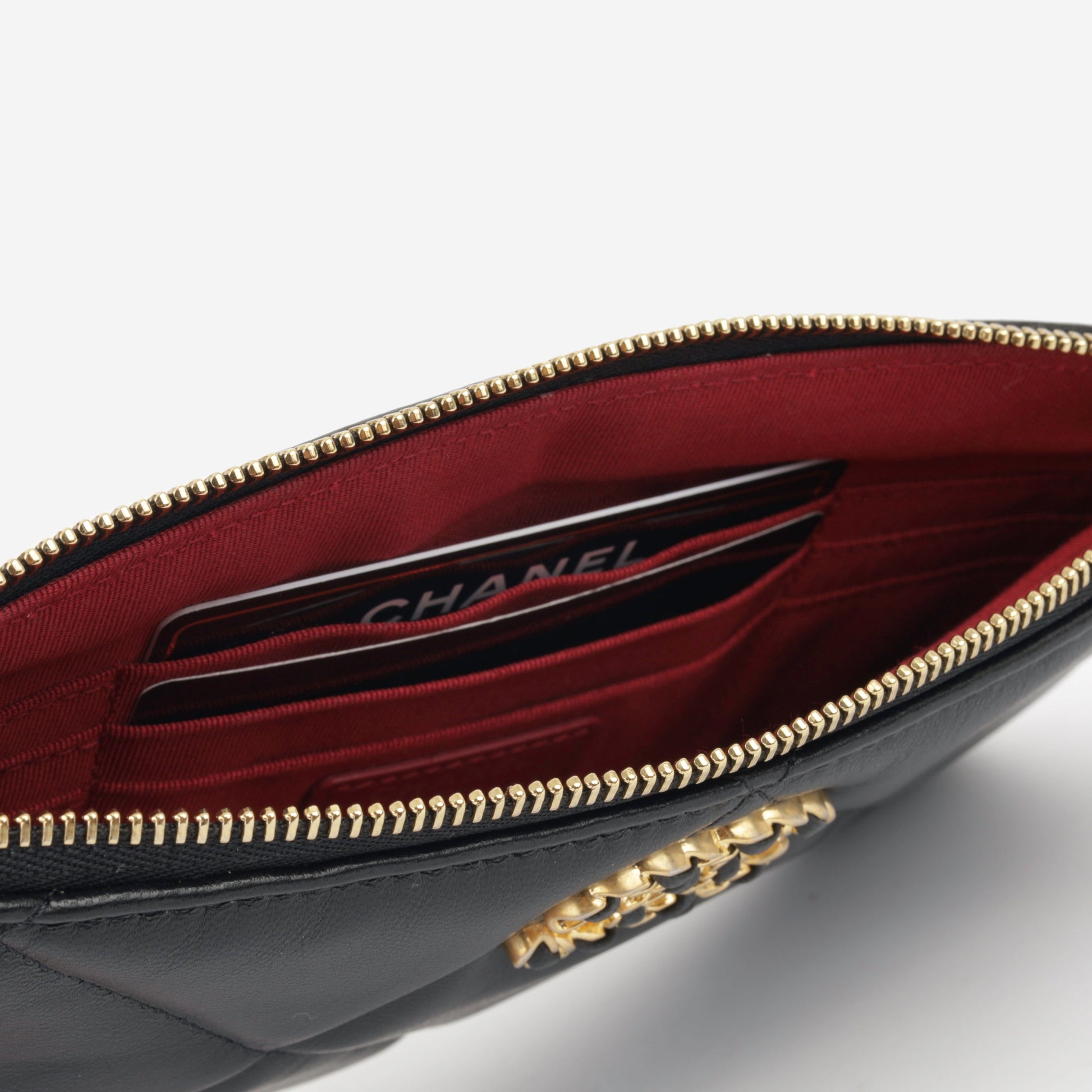 Carefully crafted in Chanel's signature lambskin leather, this stunning Chanel 19 pouch is an absolute must-have for any woman with a love for luxury and a soft spot for Chanel. An accessory you'll never fall out of love with, investing in anything Chanel is always a good idea since they rarely cease to decrease in value. Always sleek, always stylish, this Chanel 19 pouch in black is a timepiece you won't regret.