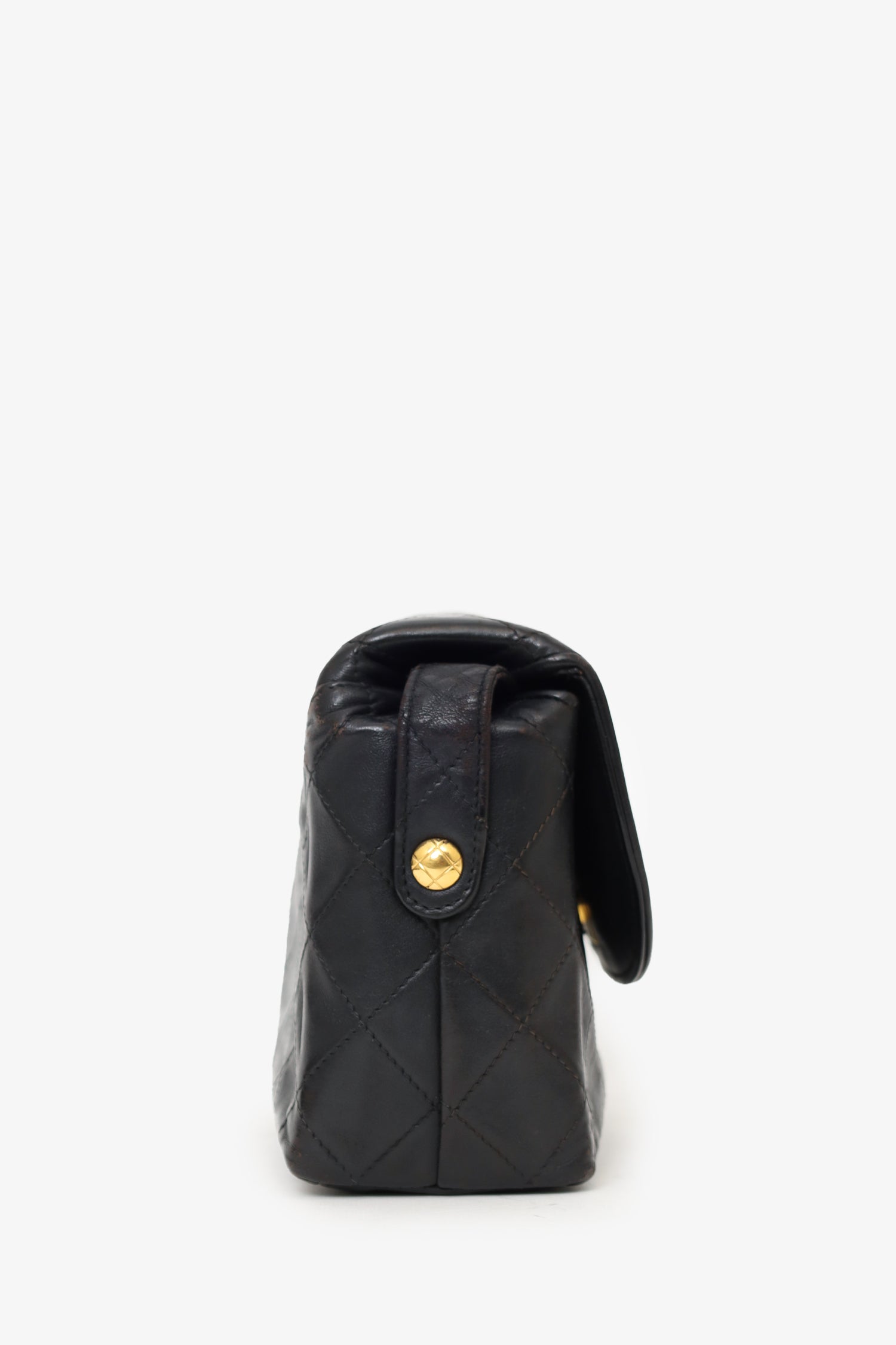Pre-Loved Chanel™ 1991-94 Black Lambskin Round Flap Shoulder Bag