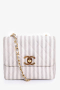 Pre-Loved Chanel™ 1994-96 Grey/White Striped Chain Shoulder Bag