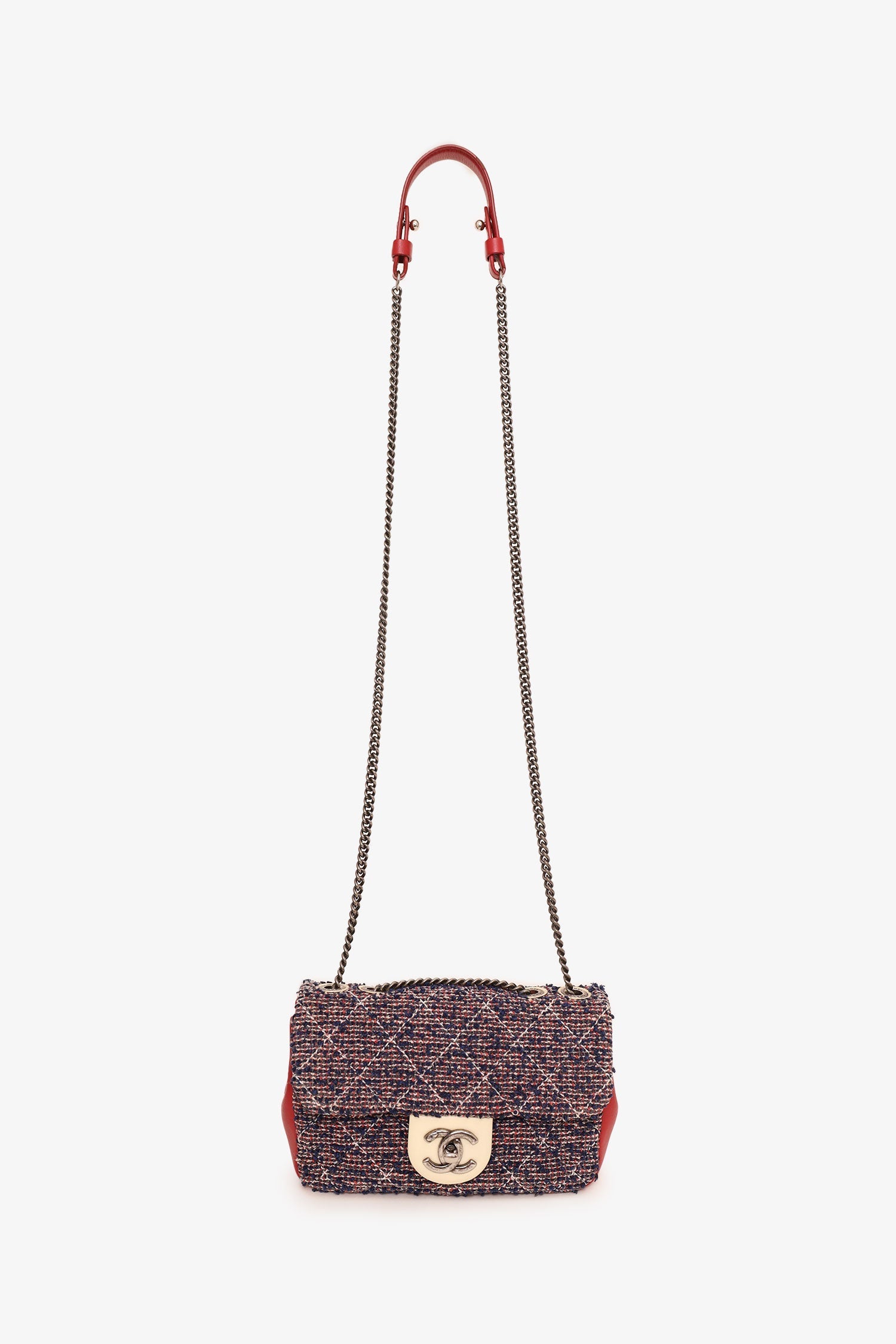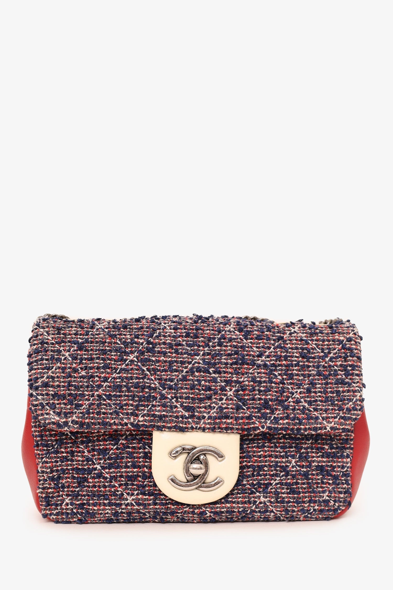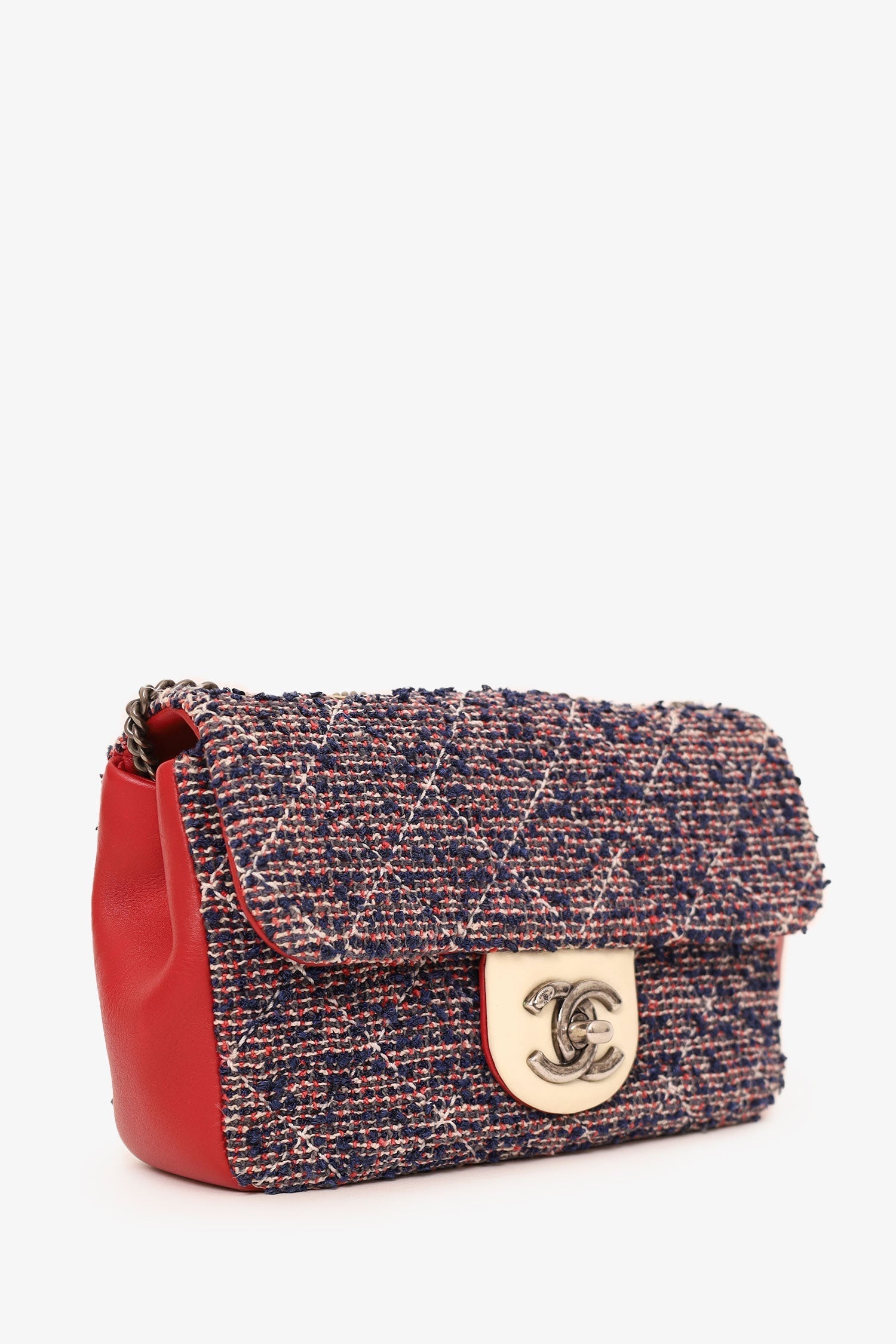 Pre-Loved Chanel™ 2016-17 Navy/Red Tweed Mini Single Flap Bag