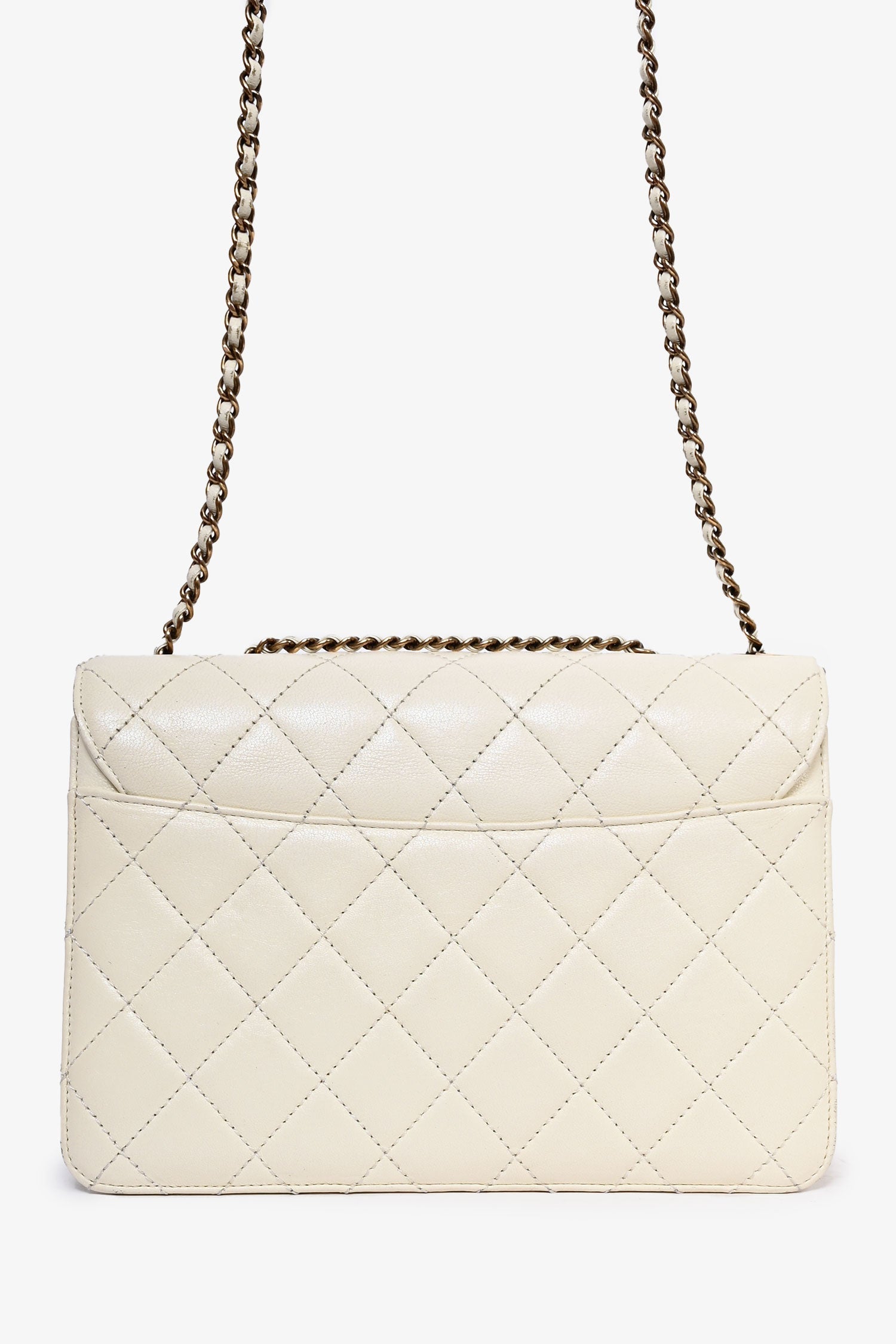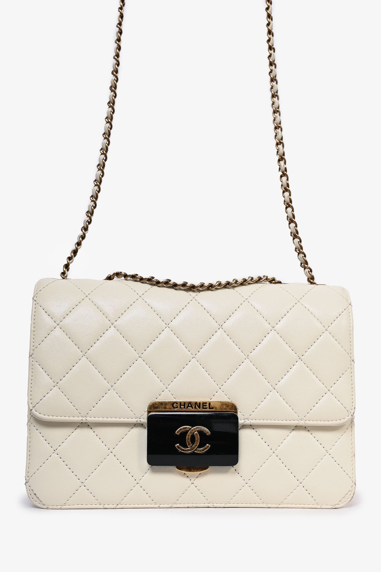 Pre-Loved Chanel™ 2016 Cream Leather Beauty Lock Flap Shoulder Bag