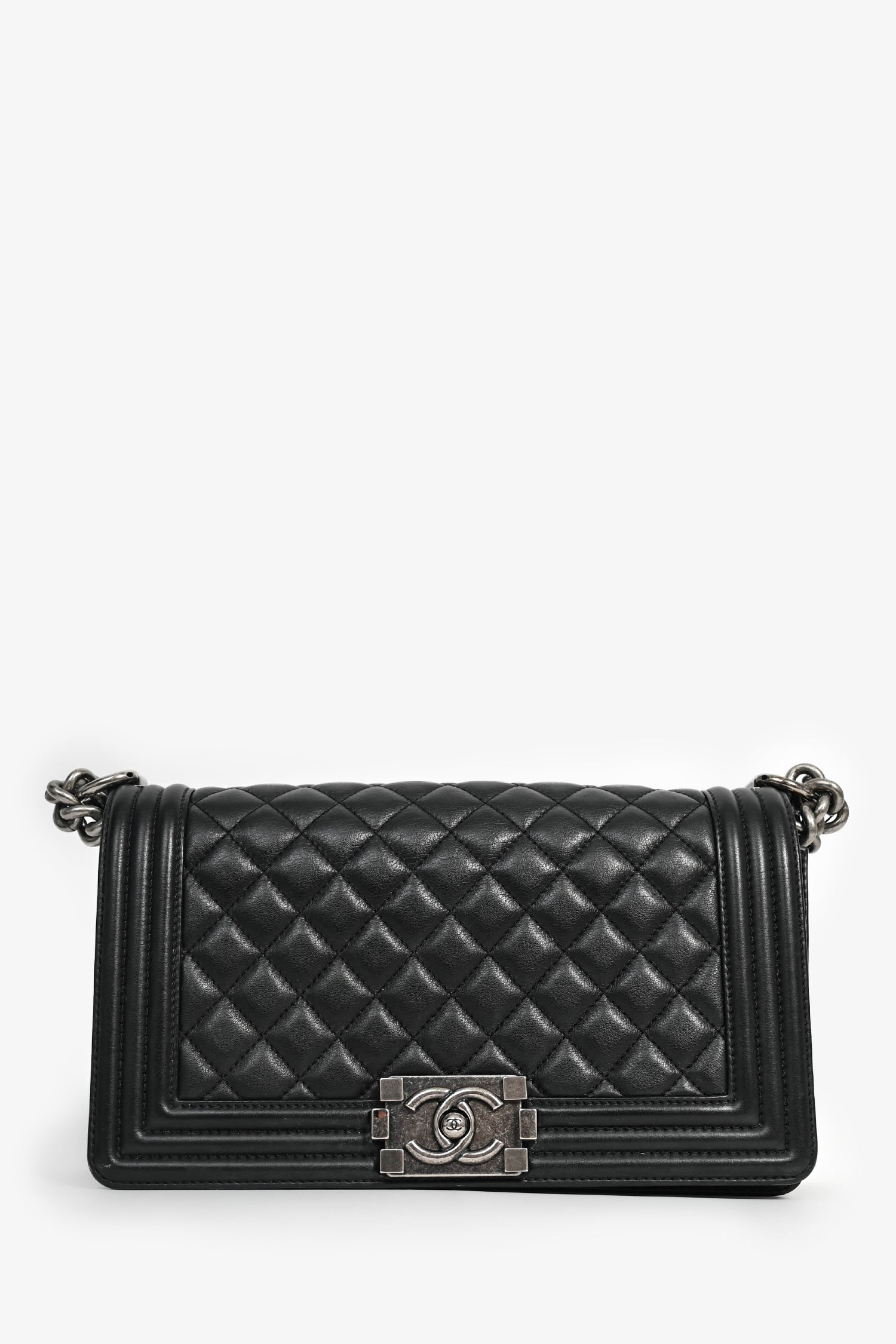 Pre-Loved Chanel 2019 Black Leather Medium Boy Bag