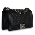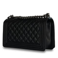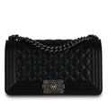 Chanel presents one of its highly acclaimed and most sought-after bags, the Chanel Boy Bag in size Old Medium in the wonderful and classic Boy combination of black lambskin quilted leather and ruthenium tone hardware. As designed by Karl Lagerfeld, the Boy Bag collection was established to embody boyish charm and femininity. Large enough to fit in all your daily essentials, this is the perfect piece you need for 2022.