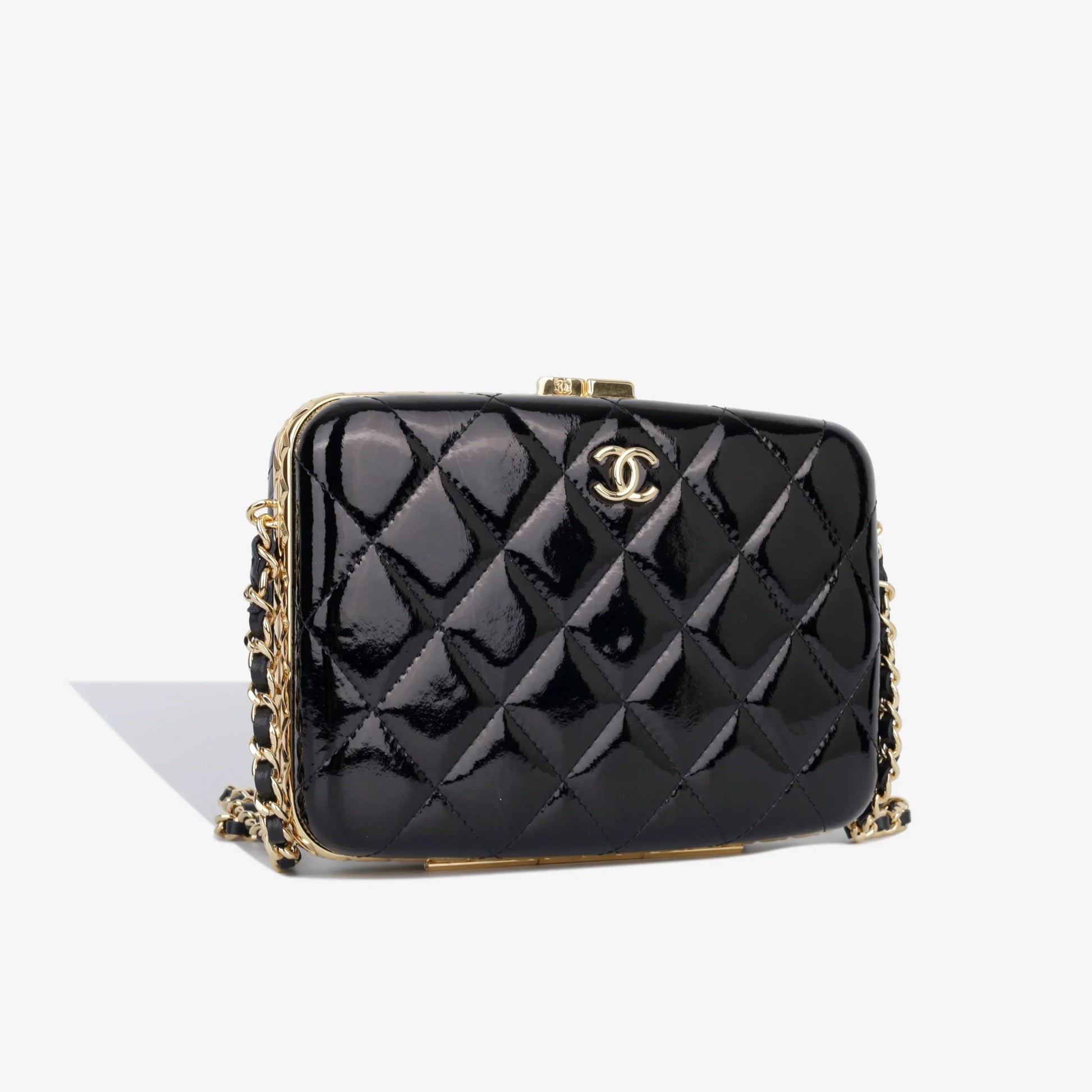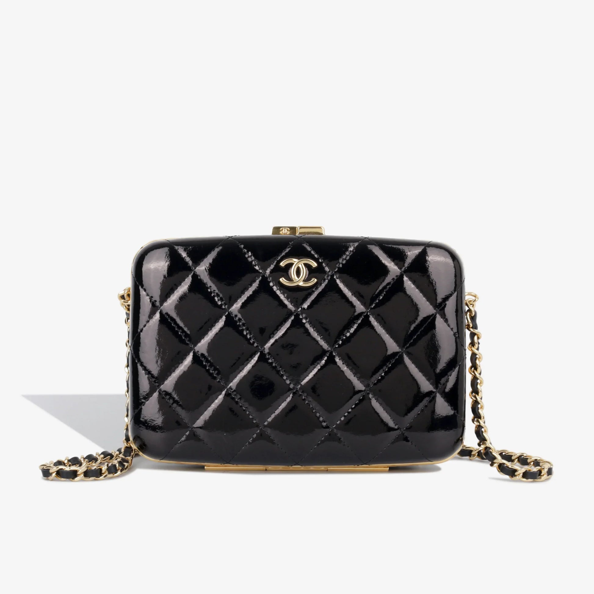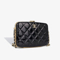 - Black patent quilted leather