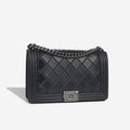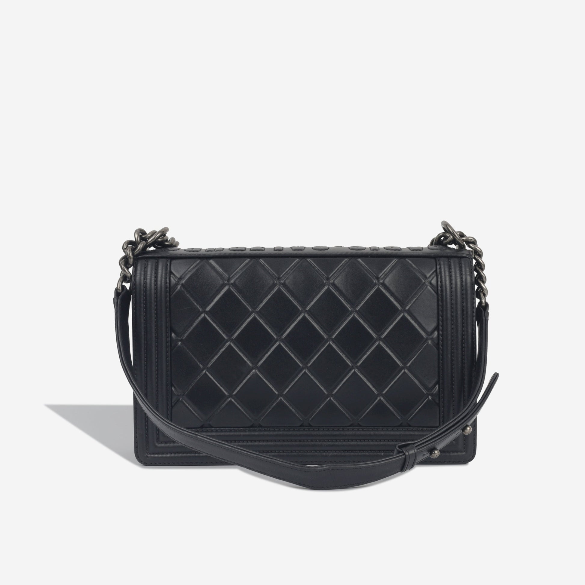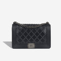 From the pre-fall collection of 2015, Chanel took their runway to Salzburg in Austria. Coco Chanel had a close connection with Austria, as it was here that she created the iconic Chanel Jacket after being inspired by the lift boys uniform at the Salzburg Mittersill Hotel. This Chanel Boy Bag in New Medium size in the wonderful and limited combination of calfskin leather with ruthenium hardware. As designed by Karl Lagerfeld, the Boy Bag collection was established to embody boyish charm and femininity.