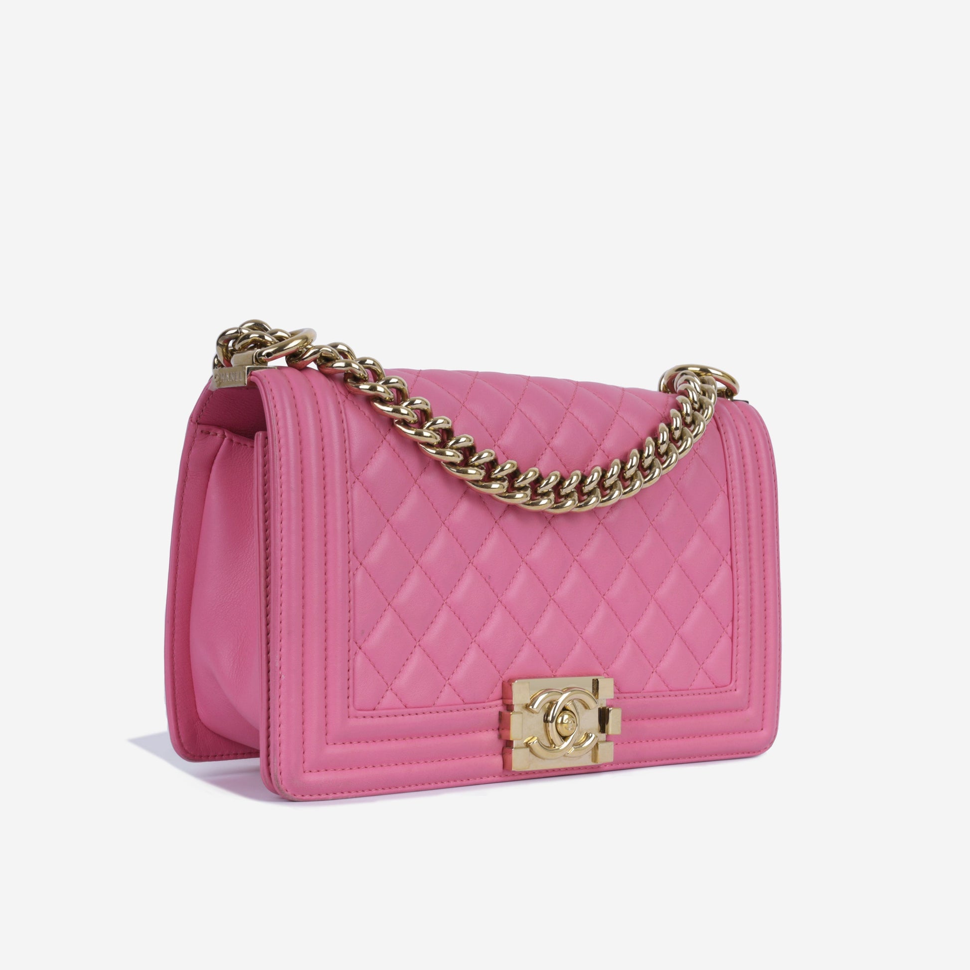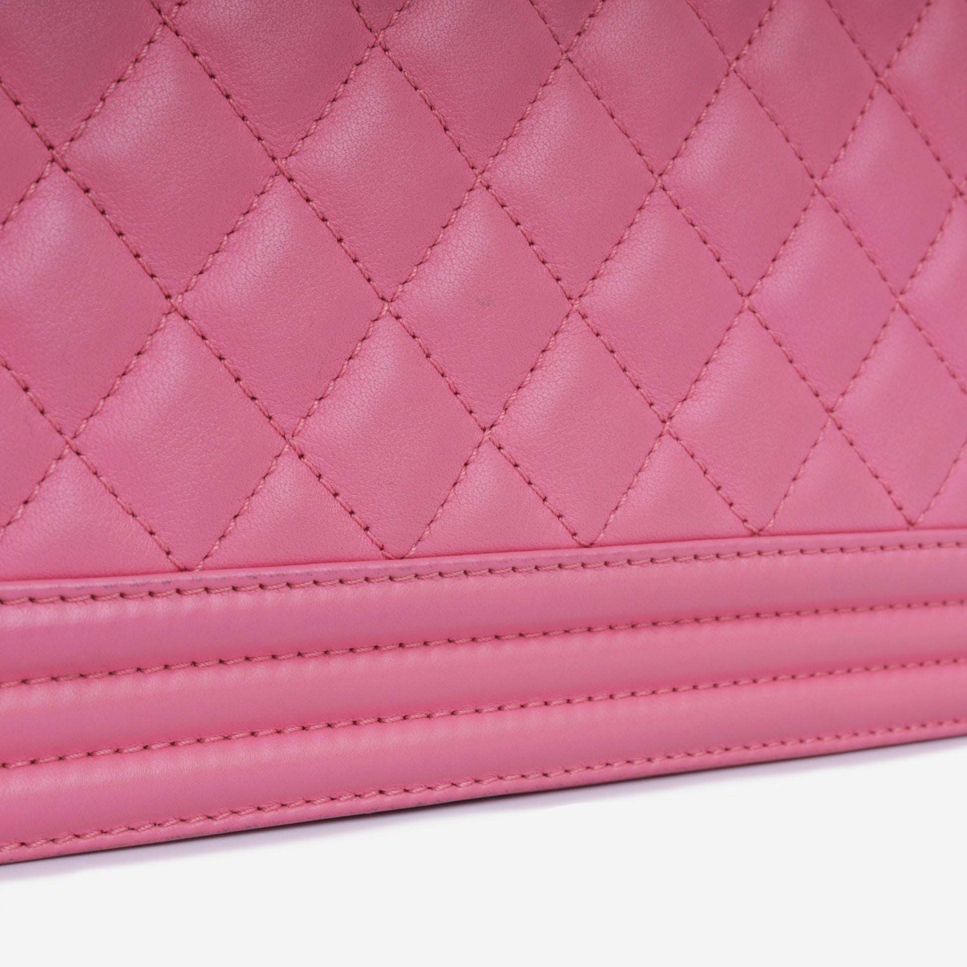 - Pink quilted lambskin leather