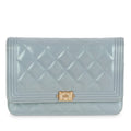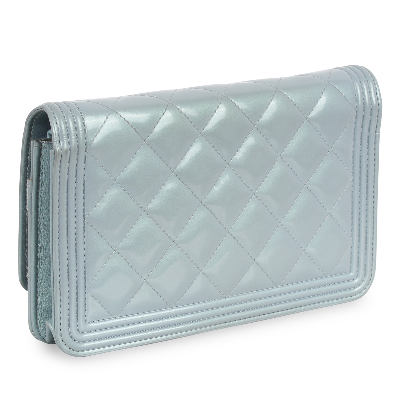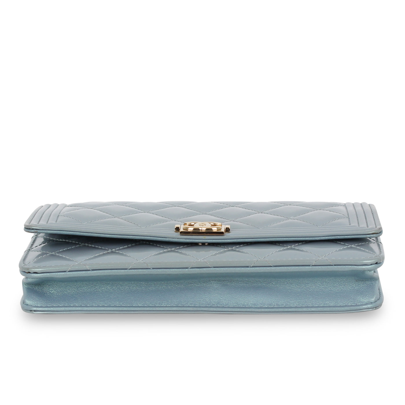 The Chanel Boy Wallet On Chain is one of the most highly acclaimed accessories from the brand. This particular piece is more or less the smaller version of the Boy bag. Sleek, stylish and sophisticated the WOC is a timeless accessory that you will have forever. Perfect for day-to-night usage, the Chanel WOC is for perfect accessory to hold all your small essentials. An easy, efficient bag you don't have to think about, this uber luxurious piece crafted from shimmery light blue patent leather, it is the ideal compliment to anything in your wardrobe. A true must-have for any woman with a love for luxury, this stunning little gem is a well-worthy addition to any handbag collection.