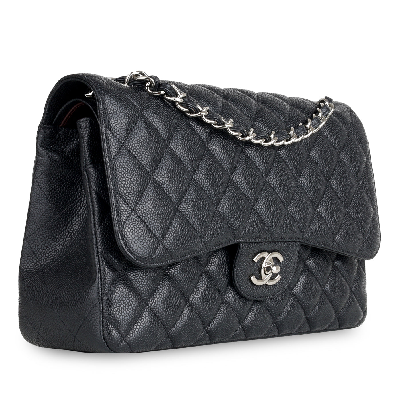 Under the creative direction of Karl Lagerfeld, the Classic Flap is perhaps the most acclaimed bag in all of fashion history. Timeless, elegant and sophisticated, it's no wonder the Classic Flap is, well, a classic. Featuring its infamous quilted caviar leather and interwoven chain / leather strap, the Jumbo embodies elegance and sophistication.