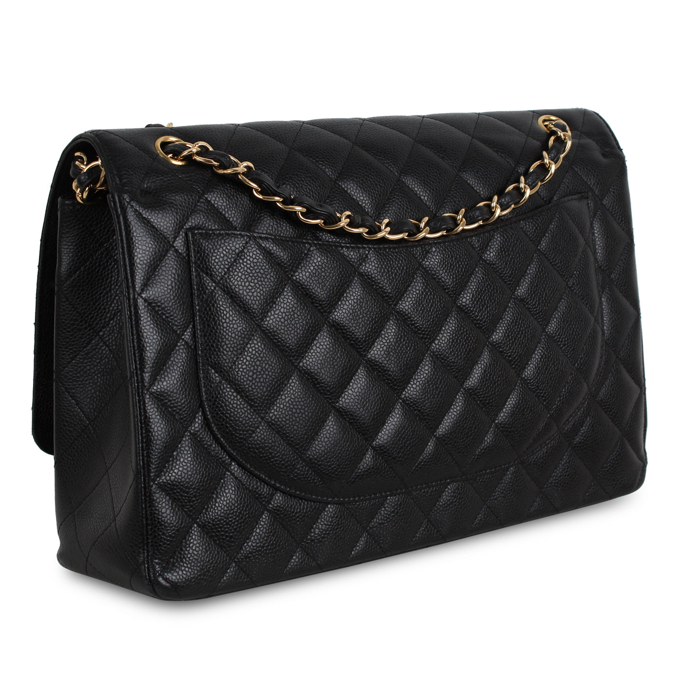 Chanel continues to present its signature line of Classic Flap bags. Under the creative direction of Karl Lagerfeld, the Classic Flap is perhaps the most acclaimed bag in all of fashion history. Timeless, elegant and sophisticated, it's no wonder the Classic Flap is, well, a classic. Featuring its infamous quilted caviar leather and interwoven chain / leather strap, the Maxi is an absolute must-have in any luxury handbag collection. Not only is this highly coveted, this stunning black bag the perfect accessory to compliment anything in your wardrobe, but it's also an investment piece that will never lose its value. Embodying elegance and traditional femininity to a T, a Chanel bag is a purchase you won't ever regret.