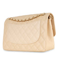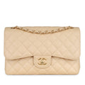 Under the creative direction of Karl Lagerfeld, Chanel continues with its line of classic quilted bags. This enviable Single Flap Bag is crafted in beige caviar leather, and detailed with fine stitching and gold hardware. The chain is interwoven with leather and can be worn on either a single shoulder strap or doubled up.