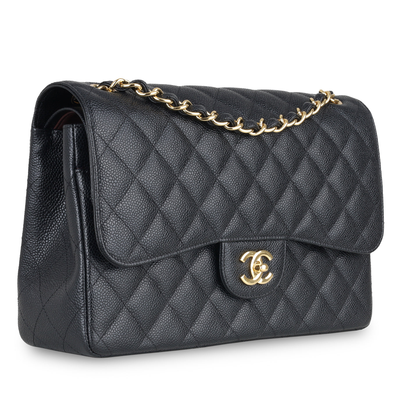 Under the creative direction of Karl Lagerfeld, the Classic Flap is perhaps the most acclaimed bag in all of fashion history. Timeless, elegant and sophisticated, it's no wonder the Classic Flap is, well, a classic. Featuring its infamous quilted caviar leather and interwoven chain / leather strap, the Jumbo embodies elegance and sophistication.