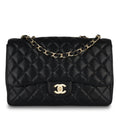 The Classic Flap is perhaps the most acclaimed bag in all of fashion history. Timeless, elegant and sophisticated, it's no wonder the Classic Flap is, well, a classic. Featuring its infamous quilted caviar leather and interwoven chain / leather strap, the Jumbo is an absolute must-have in any luxury handbag collection. Not only is this highly coveted, this stunning black bag the perfect accessory to compliment anything in your wardrobe, but it's also an investment piece that will never lose its value.