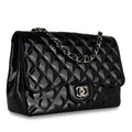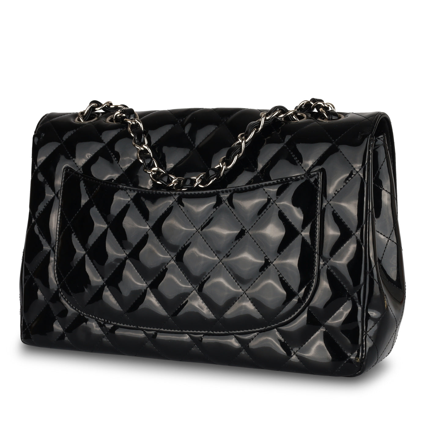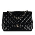 Chanel continues to present its signature line of Classic Flap bags. Under the creative direction of Karl Lagerfeld, the Classic Flap is perhaps the most acclaimed bag in all of fashion history. Timeless, elegant and sophisticated, it's no wonder the Classic Flap is, well, a classic. Featuring its iconic quilted patent leather and interwoven chain / leather strap, the Jumbo is an absolute must-have in any luxury handbag collection.
