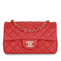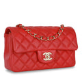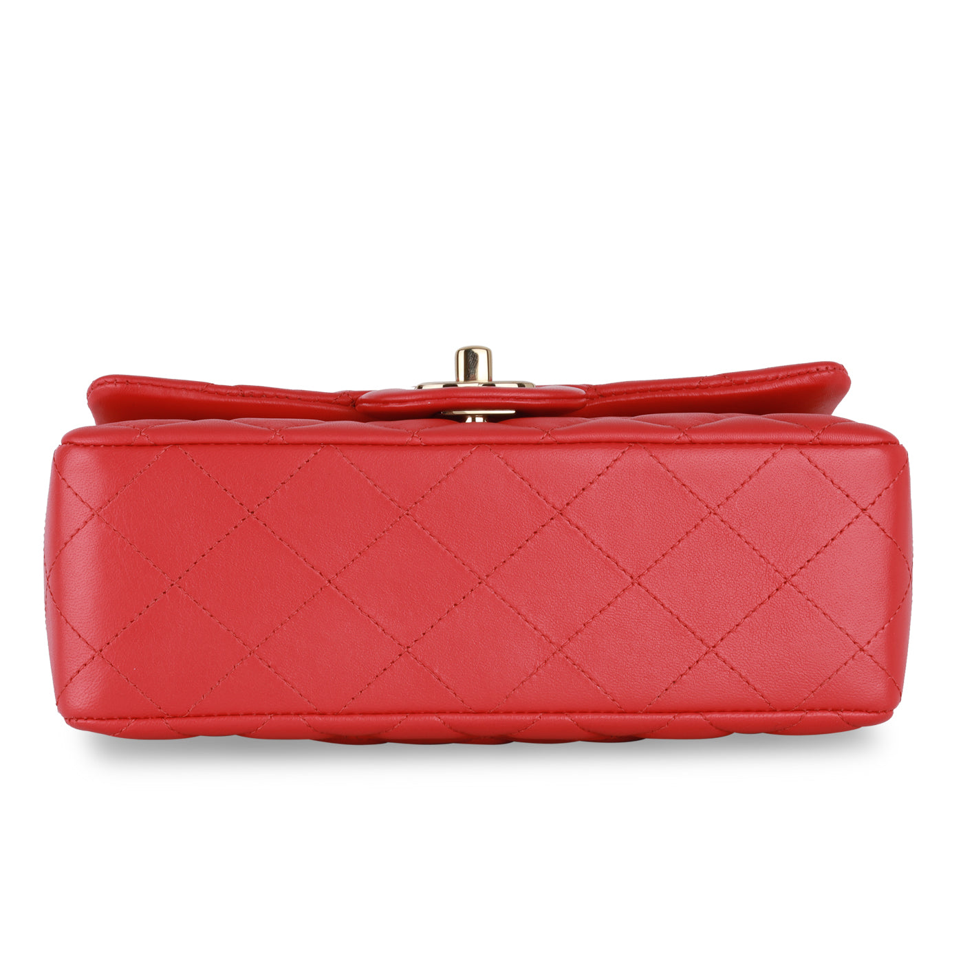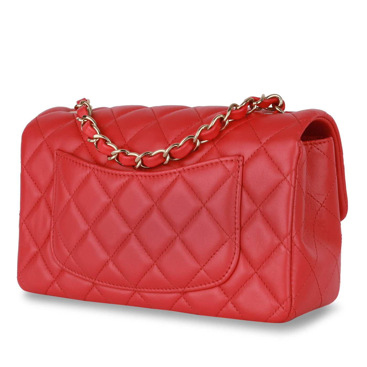 The mini rectangular flap bag is an absolute vision. Crafted from bright red lambskin leather with a glorious sheen and coupled with champagne gold tone hardware, this perfect little baby is definitely hard to get your hands on. The perfect accessory for basically anything, this mini Chanel is the ideal complement to any outfit for any occasion.