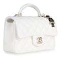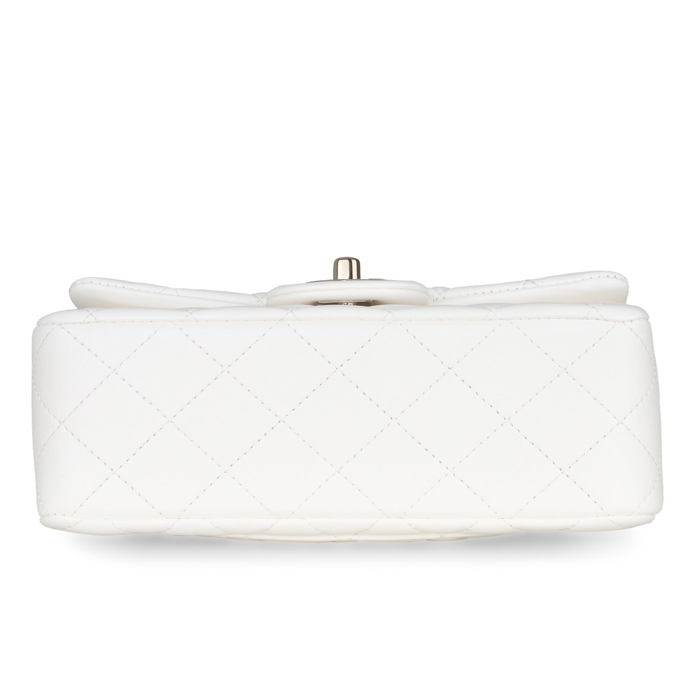 This mini rectangle flap bag is an absolute vision. We love her, to say the very least. Crafted from white quilted lambskin leather with champagne gold-tone hardware, and fashioned with a unique charm, this stunning piece is definitely hard to get your hands on.