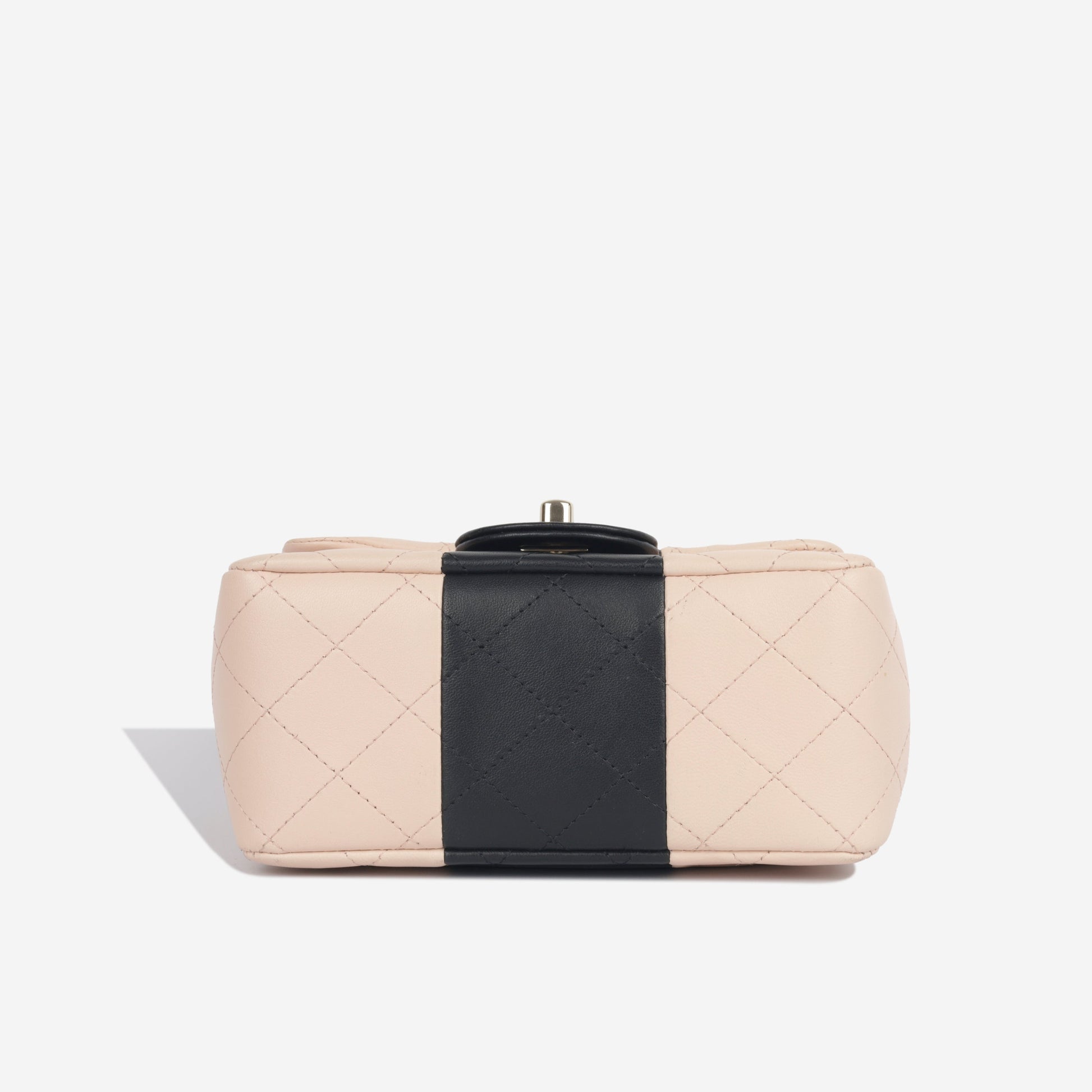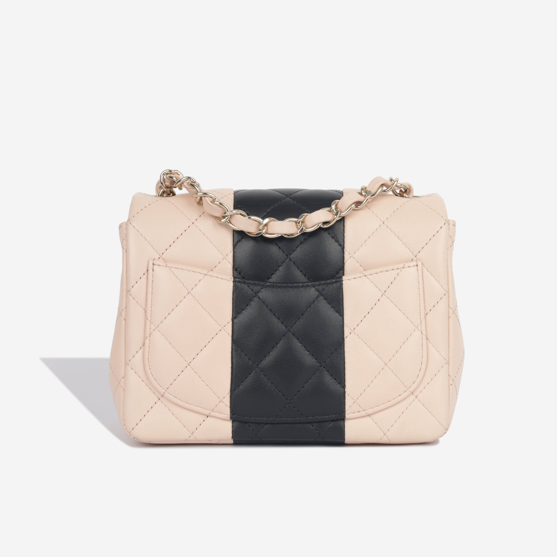 This Mini Square classic flap is one of the sweetest bags from Chanel. Big enough to carry your bare essentials with you whilst remaining delicate on the body. Carefully crafted from a bicolour combination of pink and black lambskin leather, this piece stands out from the rest. Investing in a Classic Flap is investing in a piece of history that will never decrease in value.