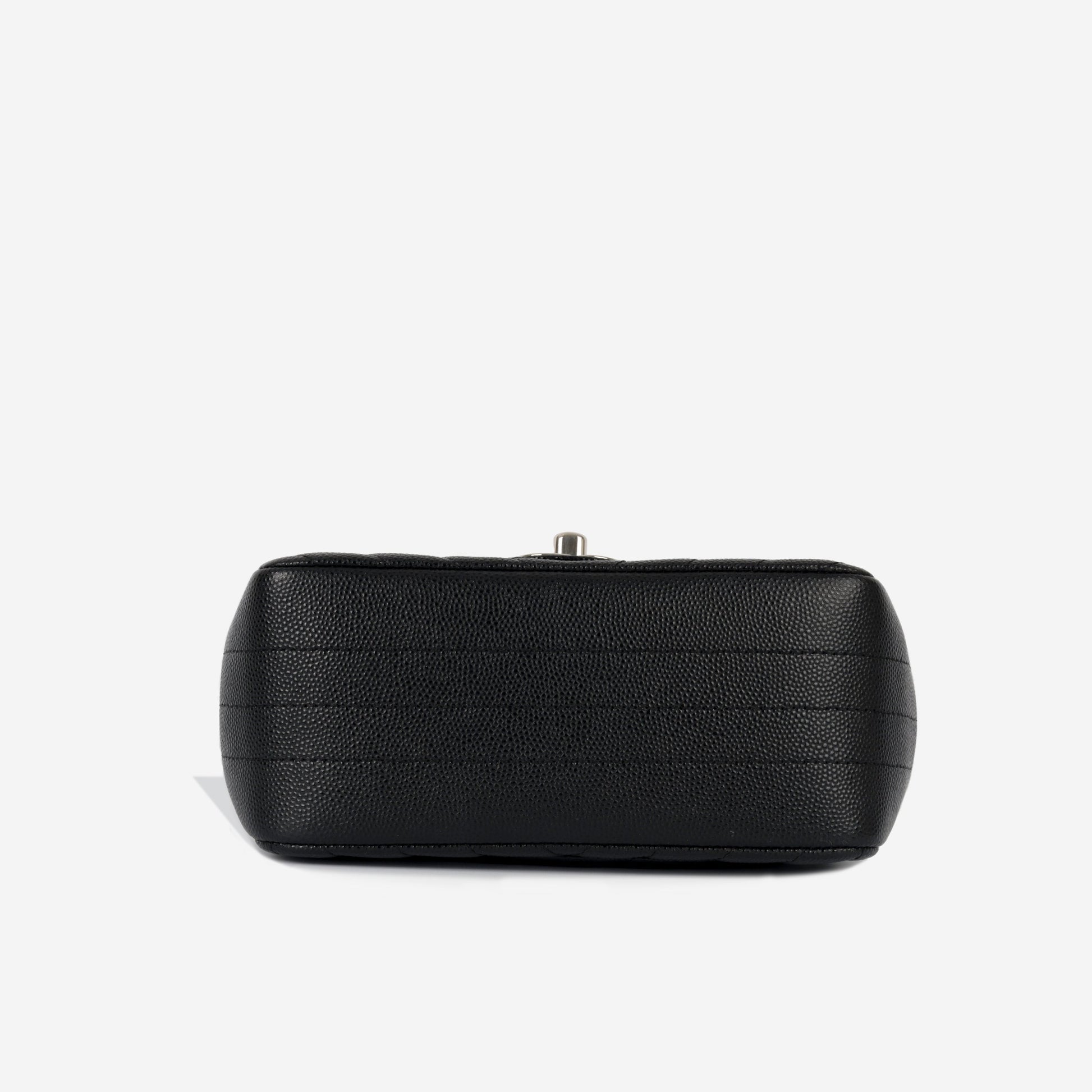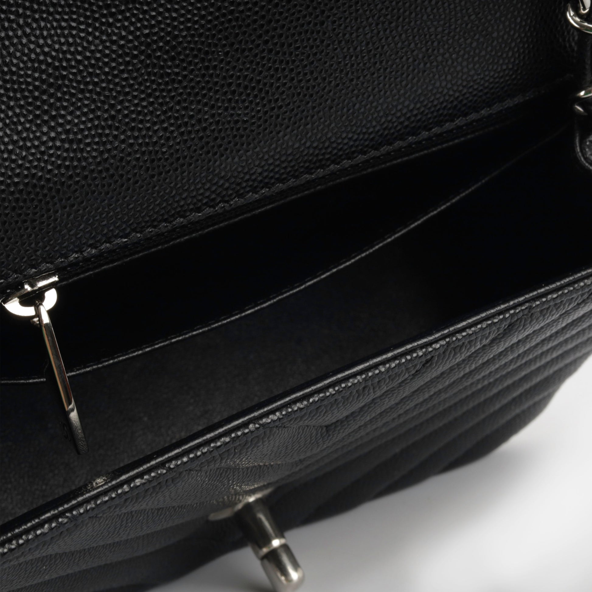 Fresh for your 2023 wardrobe collection, this piece is carefully crafted from beautiful black caviar leather and silver tone hardware, this little gem is an absolute necessity in any luxury handbag collection. Investing in a Classic Flap is investing in a piece of history that will never decrease in value.