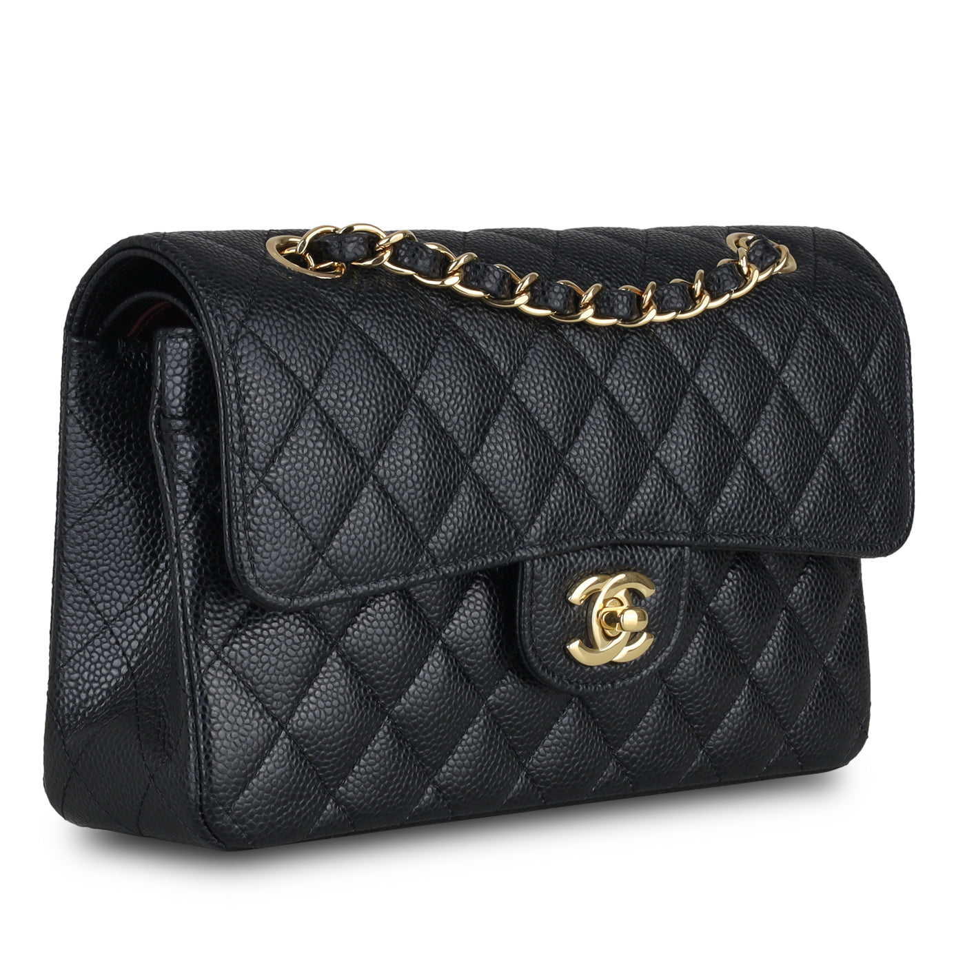 Sleek, refined and effortlessly chic, the Classic Small Flap Bag embodies Chanel’s non-traditionally feminine aesthetic. Crafted from black caviar leather and complimented by champagne gold hardware, is there anything more beautiful than this.