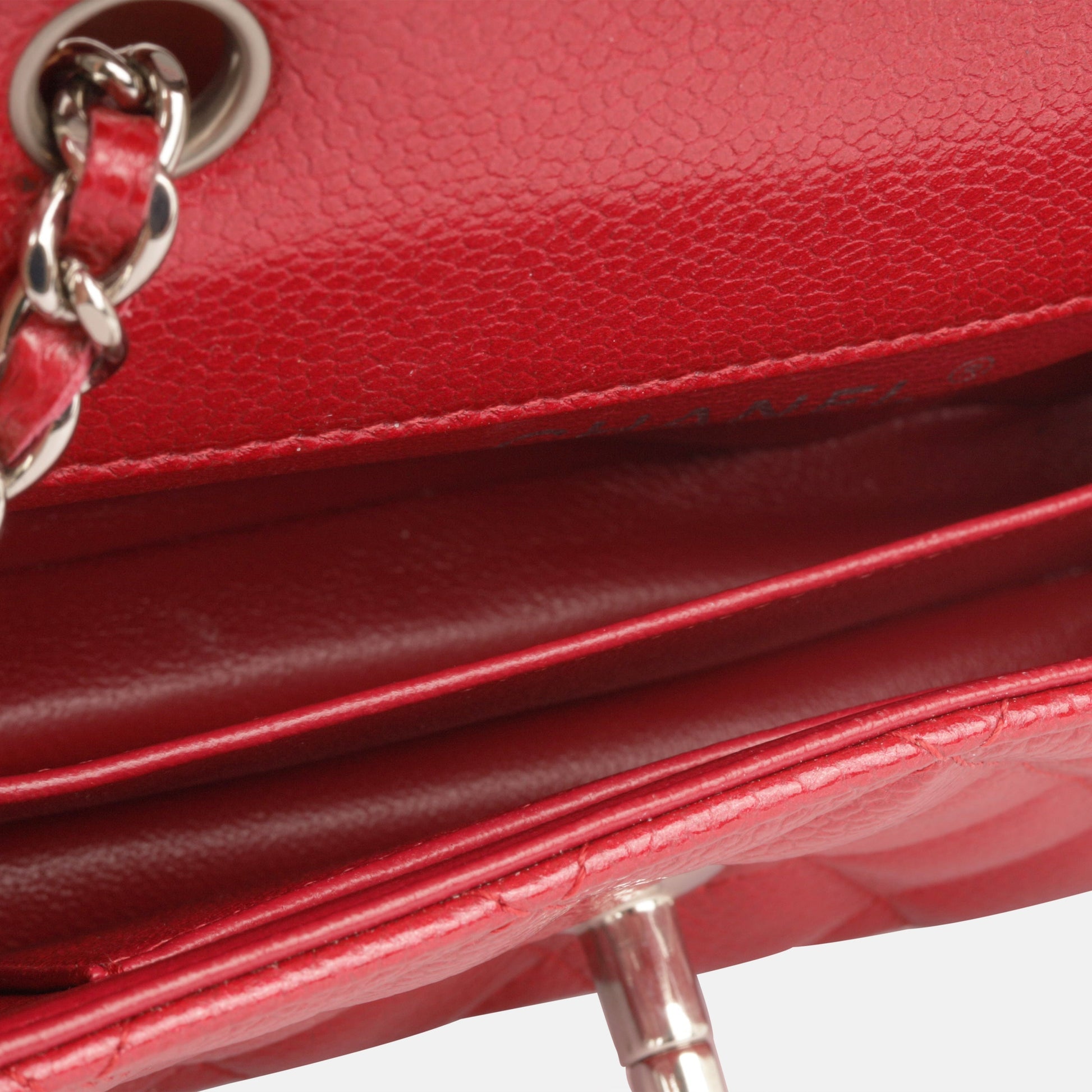 - Red fine glitter quilted caviar leather