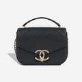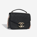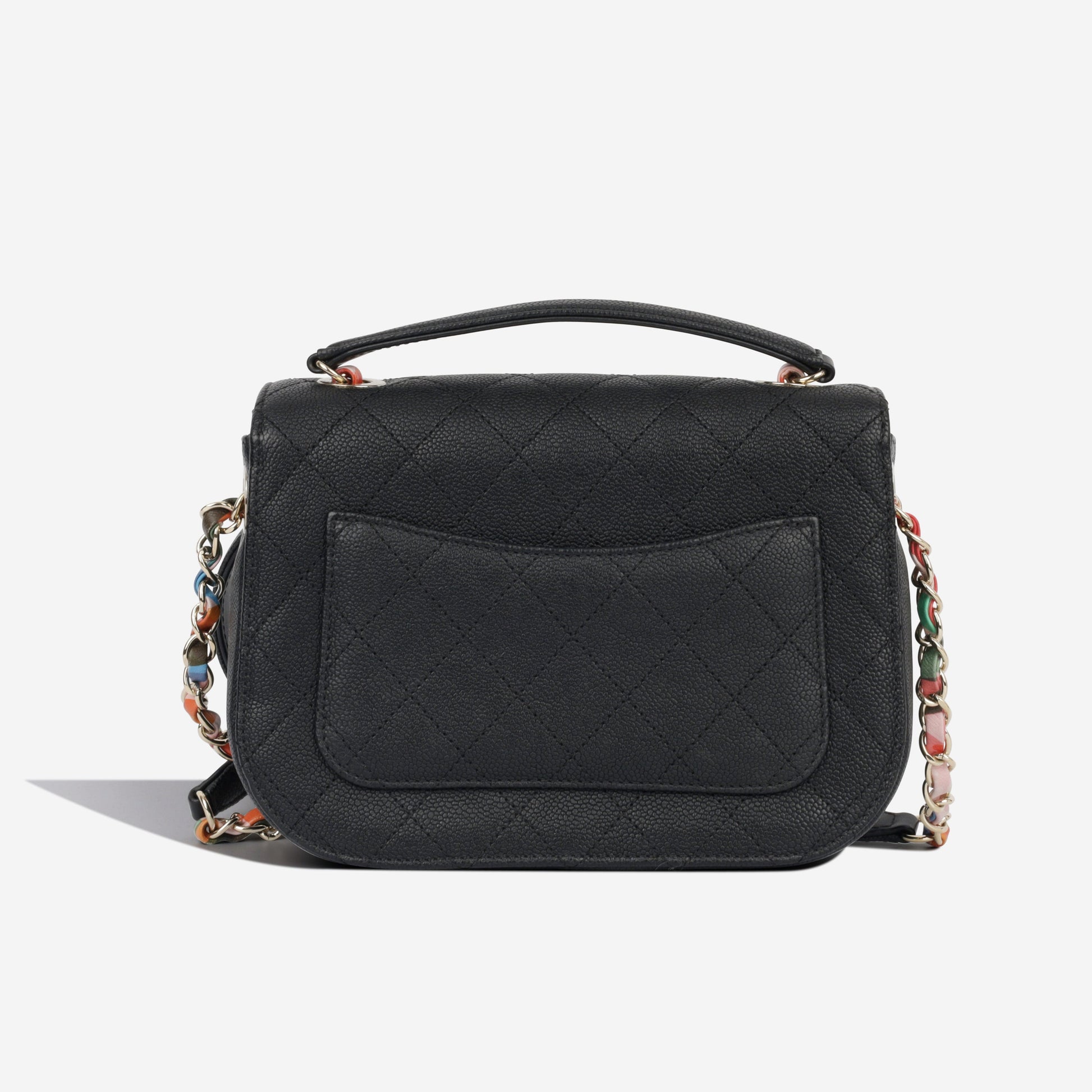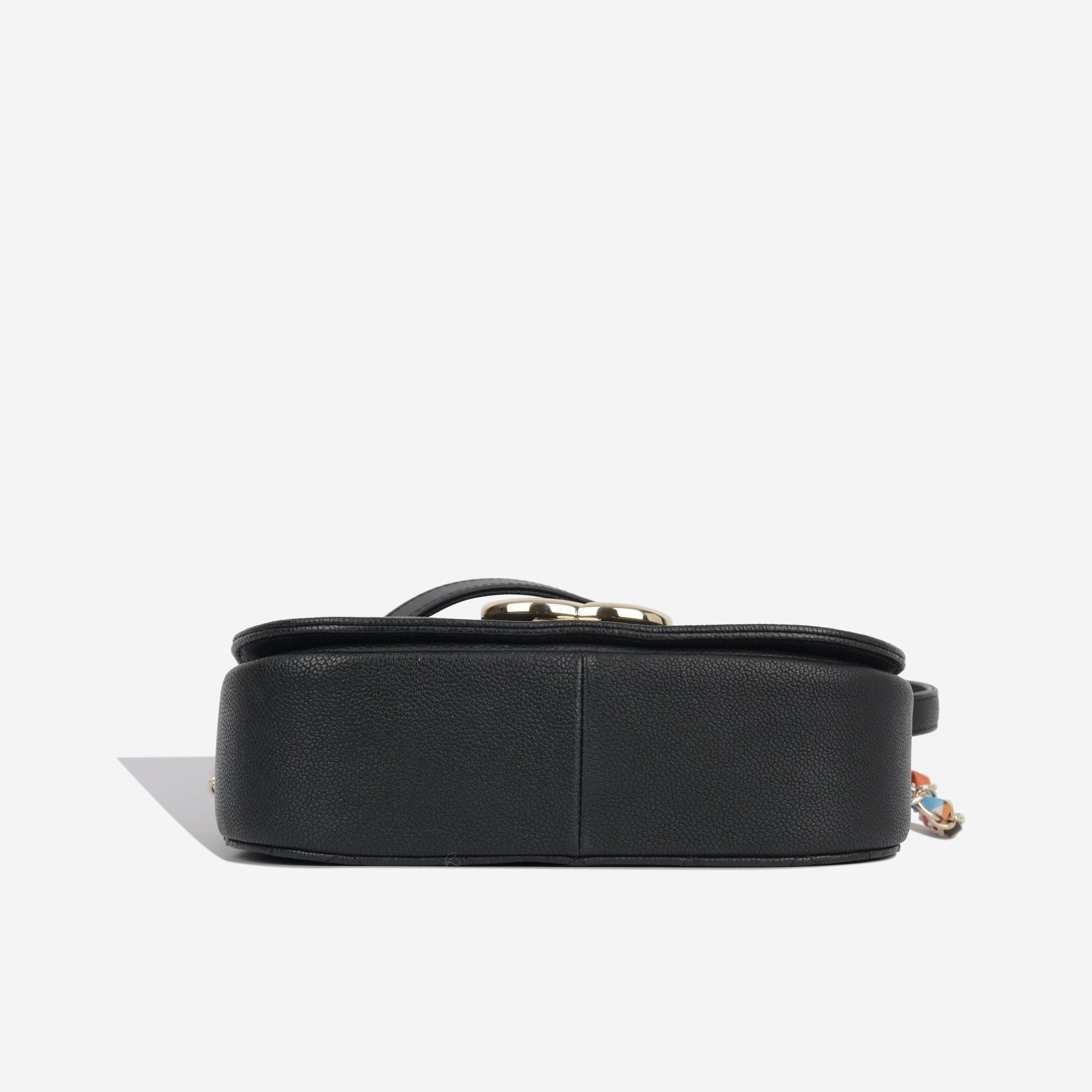 Crafted from black matte caviar leather, this unique flap bag is the perfect item to add to your spring/summer wardrobe of 2022. Featuring a colourful CC logo and leather strap, this piece is a lovely alternative to a classic flap with just a hint of colour and interest.