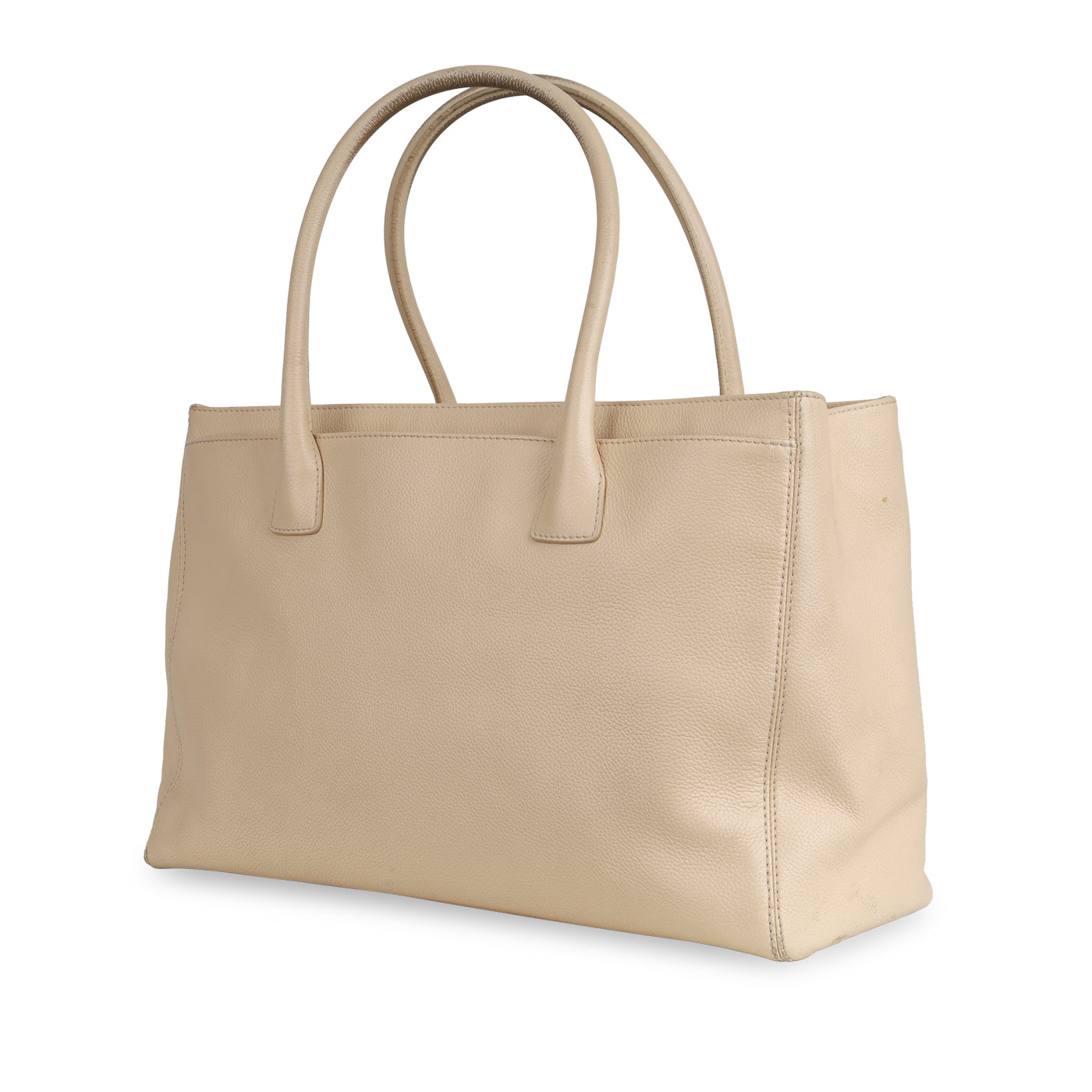 The Cerf Executive Tote in XL is the ideal handbag for the elegant and ambitious woman. Crafted in durable beige pebbled leather, this timeless Chanel classic is an absolute must-have for anyone with a love for luxury and a lot to carry.