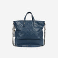 - Teal blue aged calfskin quilted leather