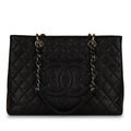 Prestige Totes presents one of Chanel’s most loved and sought-after discontinued handbags; the Grand Shopping Tote, otherwise known as the ‘GST’. The bag is presented in durable caviar leather and features the brand’s iconic quilted pattern alongside a large CC stitched logo – all of the hallmarks of your dream Chanel. Its spacious interior features two open compartments separated by a middle zip pocket. A timeless piece that will never go out of style, the GST remains one of the most in-demand Chanel bags - despite unfortunately being discontinued in 2015. A classic handbag from the brand, the GST is that bag you'll use for any and every occasion. Going to work? Running errands? Dinner party with friends? Travelling? The GST is the ideal companion to have by your side. A well-worthy investment and an absolute must-have in any luxury handbag collection.