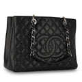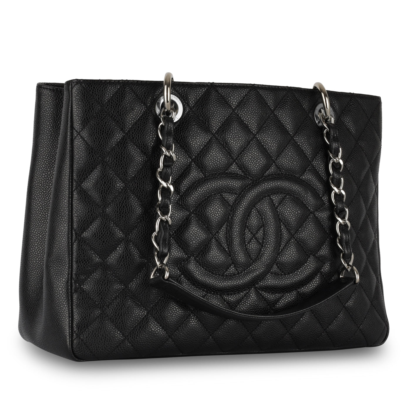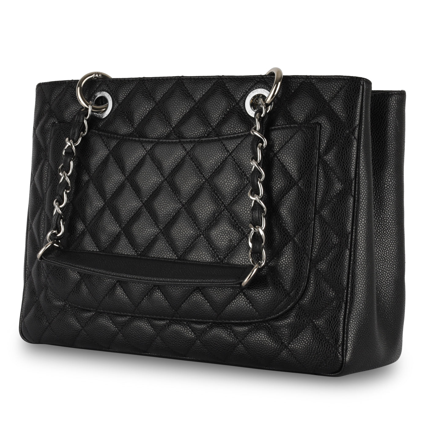 Chanel presents one of its most exclusive and coveted handbags; the Grand Shopping Tote. The bag is presented in durable caviar leather and features the brand’s iconic quilted pattern alongside a large CC stitched logo. Its spacious interior features two open compartments separated by a middle zip pocket.