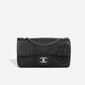 The Camellia Follies flap bag from 2012 is a beautiful and rare piece to add to your collection. The delicate beading and fabric creates texture into floral camellias which resonates with Chanel's brand. This bag was limited edition, and mixes feminity with grunge, making it ideal for so many people looking to add a unique Chanel bag to their wardrobe.