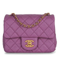 The Chanel Pearl Crush mini square flap bag is an absolute vision. We love her, to say the very least. Crafted from purple lambskin leather with brushed gold-tone hardware, this perfect little piece is extremely hard to get your hands on. The perfect accessory for basically anything, this mini Chanel is the ideal compliment to any outfit for any occasion.