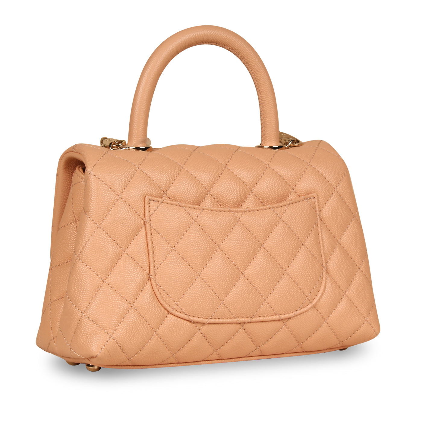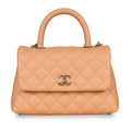 Crafted from caviar leather in Salmon Pink, Chanel presents the Small Coco Top Handle bag. Featuring champagne gold tone hardware, an interwoven chain / leather shoulder strap and a durable top handle, the Coco is the perfect balance between timeless elegance and modern edginess. Sophisticated and feminine yet perfectly in tune with modern fashion, this gorgeous bag is the ideal piece to compliment anything in your wardrobe. No matter the occasion, the Coco Top Handle can easily hold all your essentials from day to night while keeping you sleek and stylish. An investment piece you won't regret purchasing, this exquisite handbag is a true must-have for any woman with a love for luxury and a soft spot for Chanel.